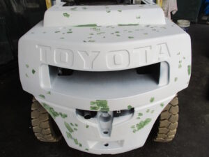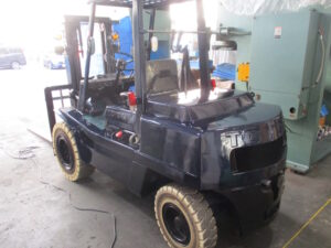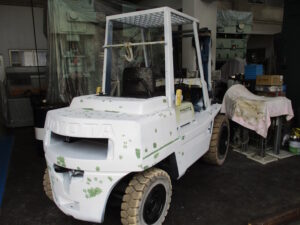 さてお題からおわかりになると思いますが、今回はちょっと変わってまして車用のメタリック塗料で中古のフォークリフトを【全塗装】するというミッションを成し遂げられた事例をご紹介したいと思います!