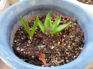 去年咲いた球根(名前忘れました・・)、昨今の日差しで花芽が
