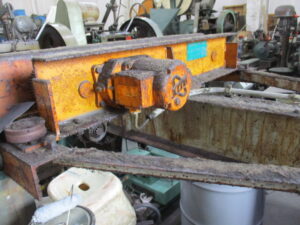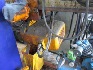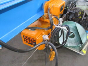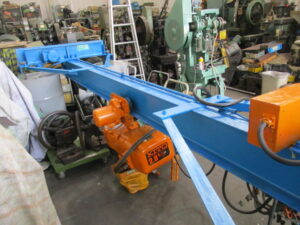 ようやく完成!!!!正解は【天井クレーン】という一般商品名で日本ホイストさんとかが有名みたいです!!中古の機械屋さんがたまたま見つけてこられたそうです。(メーカーは知りませんが)確かに中古機械になりますが・・・。正直畑が違うのではと思いましたが、構成部品はモーターとか普段のお仕事と変わらぬ機械製品。コチラを初めて販売商品として仕入れられたのではないでしょうか。ちなみに天井用クレーンなどを皆さん【グレン】と呼んでいるのは