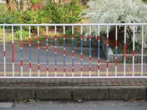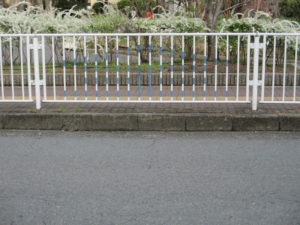 さて、みなさんのお住いの近くにある公園にもあるかも。公園から車道に出ないようにある柵がこのような注意がきありませんか?