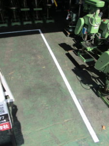 こんな感じで綺麗に仕上がりましたっ!!今まではテープでラインをとっていたそうですがめくれたり切れたりするので、塗料なら・・・と考えられて。厳密にいうと膜厚(塗料の厚み)が少ないので工場等でガシガシ使われるほどの耐久性はありませんが、テープと比べるまでもありません!