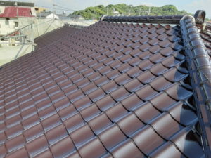 陶器瓦は無機(簡単に言うと石ですね)で耐候年数も長いけど50年でもきれいなんですね。いい味、出てますね~!!こちらを塗るのですから